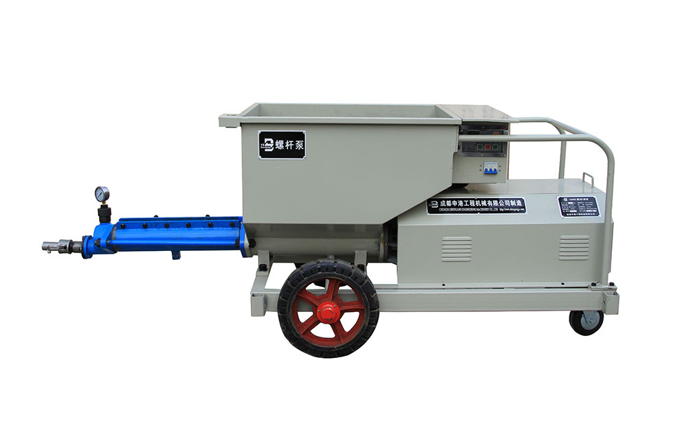 該泵結(jié)構(gòu)新穎、構(gòu)思獨(dú)特;避免了灌注稠漿較困難的不足,使用安全方便、效率高。本機(jī)主要由攪拌裝置、操作機(jī)構(gòu)、輸漿體、增壓蝸桿、增壓定子、測(cè)壓、料斗、電控系統(tǒng)等組成,當(dāng)用于噴護(hù)時(shí),還包括噴射器,其特點(diǎn)如下: